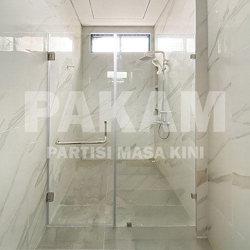 Sekat Kaca Kamar Mandi dirancang untuk menjaga area kamar mandi tetap kering dengan membatasi cipratan air agar tidak menyebar ke seluruh ruangan. Penggunaan partisi kaca membantu mengurangi risiko lantai licin sehingga aktivitas di dalam kamar mandi terasa lebih aman dan tertata. Diproduksi menggunakan kaca tempered tebal 10mm, sekat ini memiliki kekuatan dan daya tahan yang optimal untuk penggunaan jangka panjang di area dengan kelembapan tinggi.