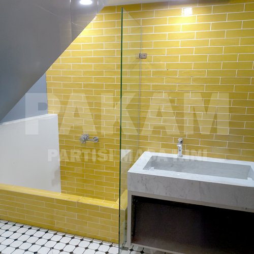 Sekat Kaca Kamar Mandi dengan material kaca tempered tebal 10mm memberikan pembatas yang kokoh sekaligus menjaga tampilan ruang tetap bersih dan modern. Permasalahan kamar mandi yang becek dan licin akibat cipratan air kini dapat diminimalkan dengan adanya penyekat yang dirancang presisi, sehingga air tidak lagi menyebar ke seluruh area dan kondisi lantai tetap terjaga.