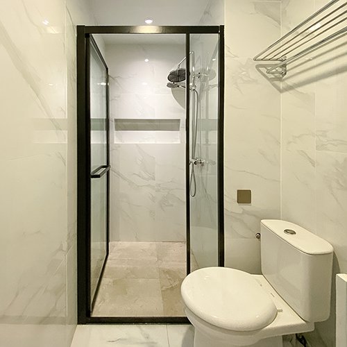 Kaca transparan yang digunakan memungkinkan cahaya alami masuk ke dalam ruangan, menjadikan kamar mandi terlihat lebih terang, segar, dan tetap luas secara visual. Selain fungsional, Shower Box Kamar Mandi juga memberikan sentuhan modern dan elegan pada interior rumah Anda. Miliki sekarang!