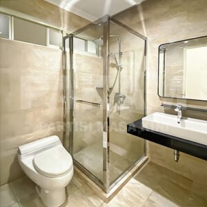 Pemilihan partisi kaca ini juga memberikan nilai tambah pada interior ruangan. Sifat kaca yang transparan memungkinkan distribusi pencahayaan alami masuk ke dalam kamar mandi secara optimal.
