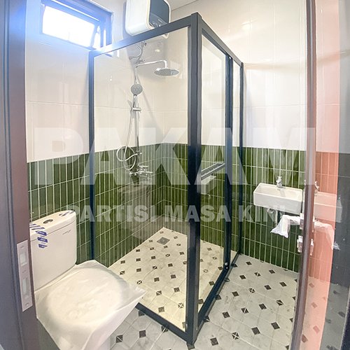 Shower Box Kamar Mandi dirancang untuk menjaga area kamar mandi tetap kering dan aman dari cipratan air yang tidak terhalang. Dengan pemasangan partisi kaca, aliran air saat mandi dapat terkontrol dengan baik sehingga risiko lantai licin dapat diminimalkan dan kebersihan area kamar mandi lebih terjaga setiap hari.