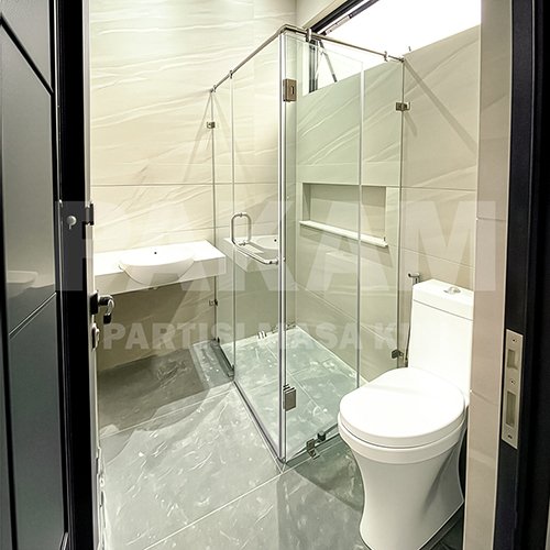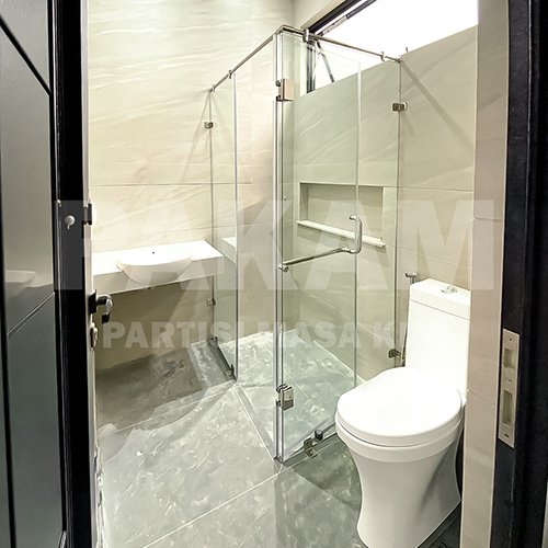 Shower Box Kamar Mandi dirancang untuk menjaga area kamar mandi tetap kering dan aman dengan membatasi cipratan air agar tidak menyebar ke seluruh lantai. Penggunaan partisi kaca membantu mengurangi risiko lantai licin sehingga aktivitas di kamar mandi terasa lebih nyaman dan tertata.