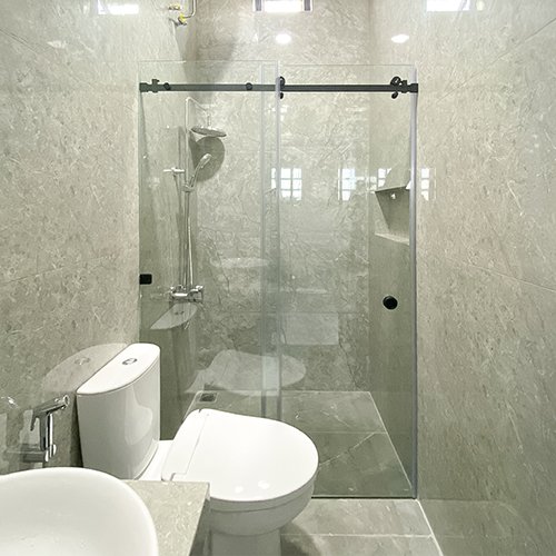 Sliding Door Kamar Mandi PAKAM dirancang untuk memberikan kenyamanan dan keamanan ekstra di area basah. Dengan ketebalan kaca 10mm, pintu ini berfungsi sebagai partisi yang efektif untuk mencegah cipratan air keluar dari area mandi, sehingga lantai tetap kering dan tidak licin.